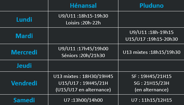 Les entrainements